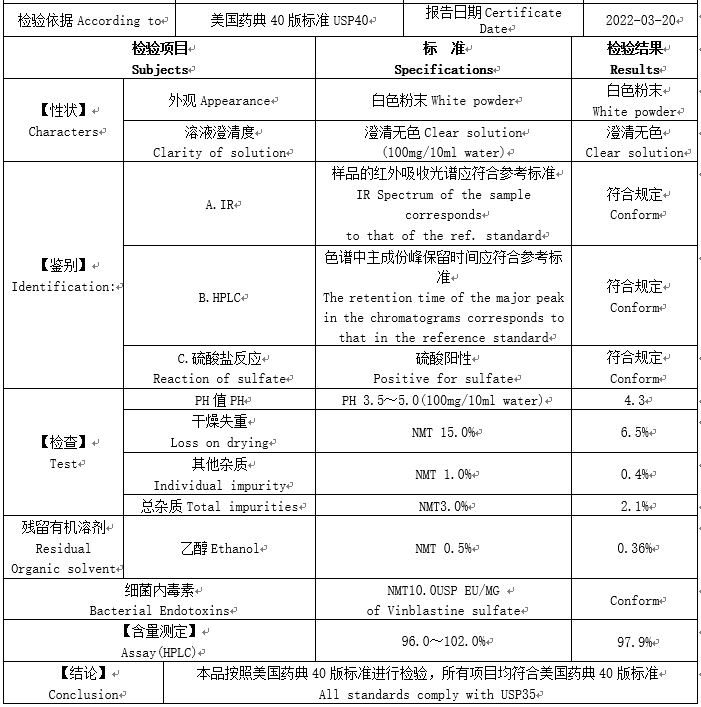中文別名 硫酸長春堿;硫酸長春花堿;本甲馬林;長春堿;硫酸長春花堿,Vinblastine sulfate